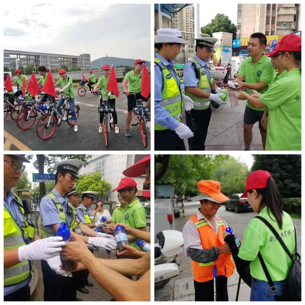 26日一早,志愿者们在团委老师的带领下,准备好绿豆汤、风油精和无极膏等防暑降温物品,先后走访了巢湖路世纪联华岗亭、人民路百大岗亭、东风路安德利岗亭,为高温天气下执勤的交警与周边环卫工人送上了“清凉”,面对面表达了对交警与环卫工人们在烈日下的坚守与无私付出的感激之情。