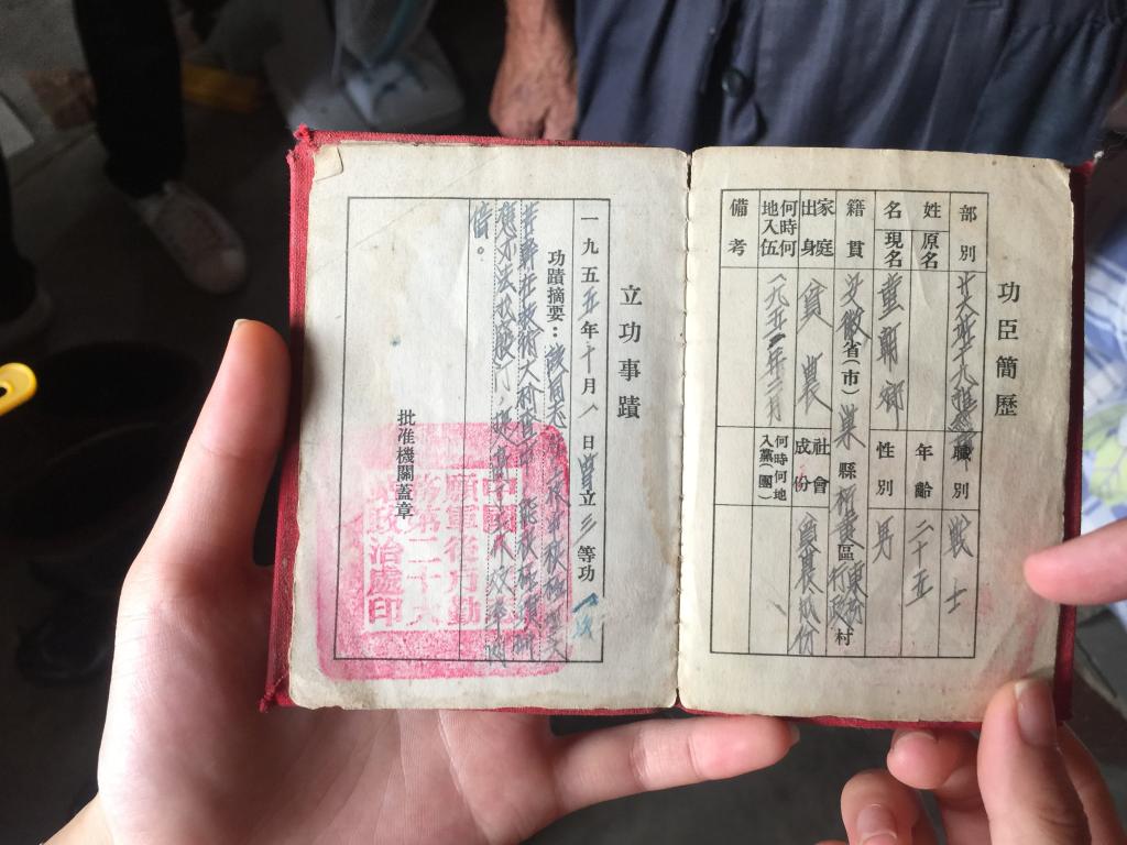 童朝青爷爷今年90高寿,身子骨却十分硬朗,耳不聋眼不花,每天还自己劈柴、做饭。童爷爷也参加过抗美援朝战争,说到他的革命历史,老爷子高兴地转身走向床,将枕头下用布包得严严实实的一个小红本拿了出来,打开一看,原来爷爷曾在1955年立下了三等功,更是让我们肃然起敬。交谈中,童爷爷还激动地说:“没有共产党,早就没有我了,感谢党和国家的关心。”