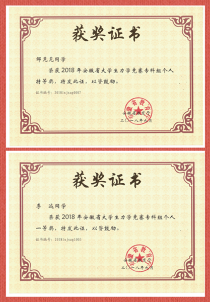 日前,2018年安徽省大学生力学竞赛总结会议在合肥工业大学屯溪路校区召开。Beat365建筑工程学院学子共获得6个奖次:2015级工程造价2班邹见见同学获得专科组个人特等奖,2016级建筑工程技术2班李远同学获得专科组个人一等奖,另有4名同学获得专科组个人三等奖。