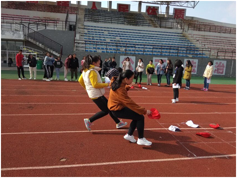 在“旱地赛龙舟”的赛场上,同学们跃跃欲试,比赛的哨声吹响时,口号声在操场上跌宕起伏;操场那边“揭竿而起”更是火爆极了,笑声欢呼声不断,男女同学一齐配合,越过阻碍,奔向胜利;在“无敌风火轮”那里,参赛队员们小心翼翼,紧张刺激地完成一次又一次的合作;在拉拉队的呐喊助威下,“三人一行”的队员们不甘示弱,斗智斗勇,向着目标跨越。