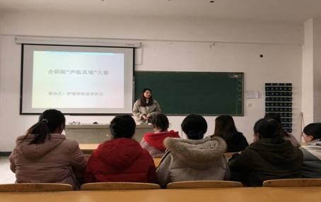 12月12日下午,由合职院演讲协会社团举办的主题为“声临其境”的配音大赛在巢湖校区教学楼D208教室圆满落幕。护理学院团学老师、演讲协会全体成员及配音爱好者们参加了本次活动。