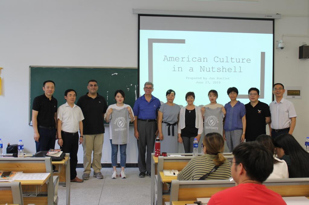 简短的欢送仪式过后,进入了正式的讲座环节。此次活动学院邀请到了来自美国密歇根的Janice Carol Poellet女士作为本次讲座的主讲人。