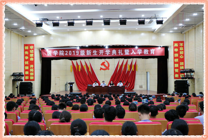 9日下午,医学院2019级新生开学典礼在大学生活动中心隆重举行,该院的党政负责人和全体新生、辅导员、班助齐聚一堂,院长王荣俊和党总支副书记孙美兰(主持工作)先后主讲,典礼由党总支副书记吴俊峰主持。