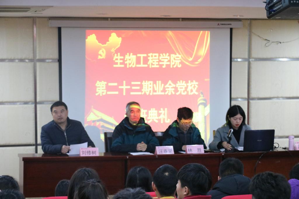 开班典礼在庄严的国歌声中拉开序幕。该院党总支书记汪春荣作了深情的动员讲话。忆往昔,他回顾到生物工程学院已成功举办22期业余党校培训班,1400多名优秀学员从这里毕业,740名学员光荣加入中国共产党。立当下,他给学员们提出了三点期望:一是要认真学习,不断提高理论水平,积极向党组织靠拢;二是要加强实践,进一步增强服务意识;三是严格要求自己,增强角色意识,发挥先锋模范作用。