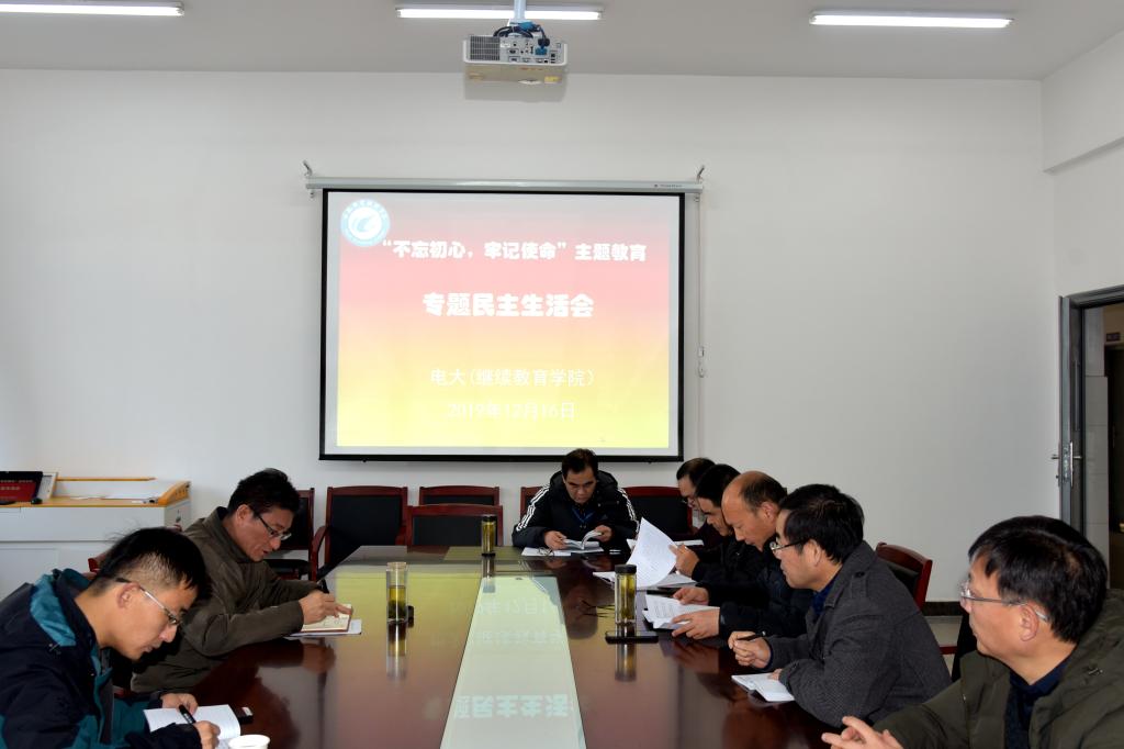 根据学校党委《关于在“不忘初心、牢记使命”主题教育中召开党总支专题民主生活会和党支部专题组织生活会、民主评议党员的通知》文件精神,电大(继续教育学院)党总支于12月16日,在电大党员活动室召开“不忘初心、牢记使命”专题民主生活会。学校第四督导组组长、副校长孙兴林,督导组副组长陈攻到会指导。电大(继续教育学院)总支委员参加了会议,会议由该院党总支书记何世峰主持。