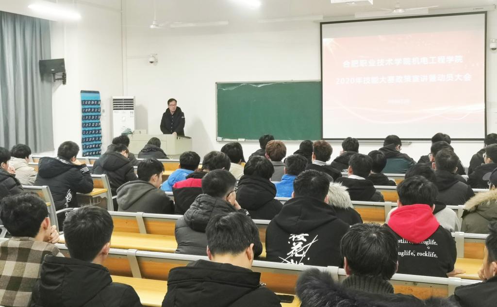 为进一步提高机电工程学院技能大赛参赛队伍素质和水平,营造积极拼搏的比赛训练氛围,提前谋划、及早部署明年技能大赛工作,12月25日下午,机电工程学院召开2020年技能大赛动员大会。机电工程学院副院长(主持工作)胡木林、副院长孙新梅及所有赛项指导教师、参赛选手参加会议。