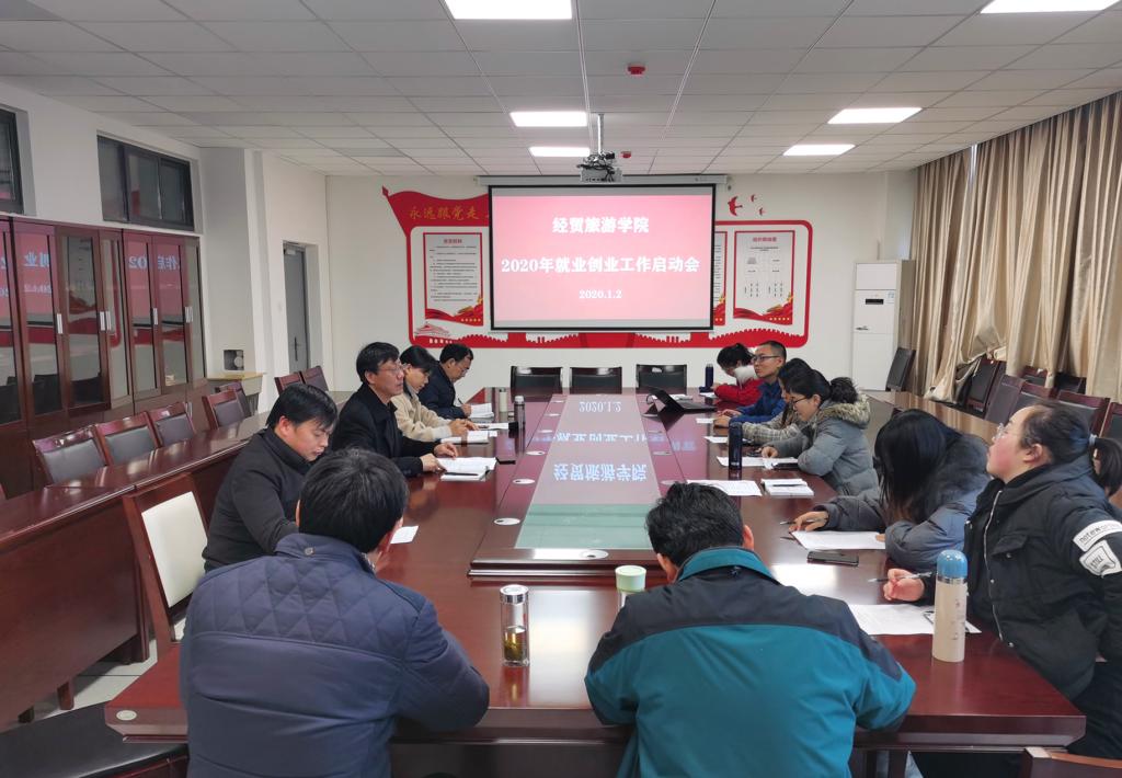 为进一步促进2020届毕业生充分就业,2020年1月2日下午,经贸旅游学院召开2020年就业创业工作启动会。经贸旅游学院就业创业工作领导小组全体成员参加会议,会议由该院负责就业的王明明老师主持。