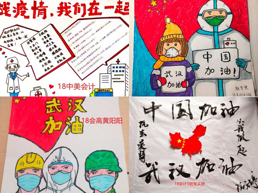 即使“宅”在家中,经贸旅游学院的同学们仍然心系疫区,据不完全统计,经贸学子通过各种渠道向疫区捐款近3万元。此外,他们还通过书法、绘画等方式,表达对抗“疫”一线“最美逆行者”们的牵挂,“中国加油!武汉加油”的字样和医护人员的手画作品都生动的体现了他们对战“疫”必胜的信心及对战“疫”期间默默守护者的感激和敬意。