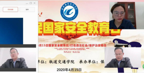 同学们首先观看了“全民国家安全教育日”宣传短片,并在吴明丽老师的带领下,认真学习了《国家安全知识应知应会》和有关国家安全的真实案例,让同学们深刻了解到国家安全的重要意义。保卫处处长谭连生为同学们解释了国家安全包括国民安全、领土安全、主权安全、政治安全、军事安全、经济安全、文化安全、科技安全、生态安全、信息安全和核安全等11个方面的基本内容,并结合学校安全保卫工作实际,重点从网络电信安全、公共场所安全、消防安全、交通安全以及危急情况的应急措施等五个方面,提醒同学们要加强自我防范意识,提高个人保护能力,确保同学们疫情结束返校后的校园生活和学习安全、有序。
