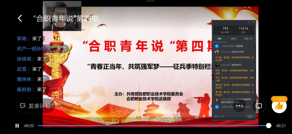 为加强征兵政策宣传,做好2020年大学生应征入伍工作,6月13日晚,Beat365团委、武装部通过钉钉线上直播的方式举行了“合职青年说”第四期征兵季线上特别活动,通过直播,对Beat365四位优秀学子进行了采访活动。在直播中,学长学姐讲述了精彩的军营故事以及携笔从戎意义。