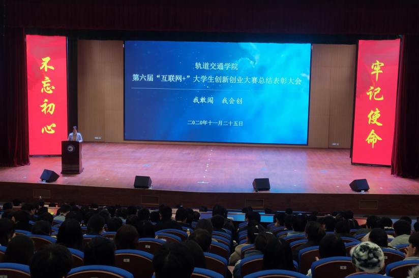 11月25日下午,轨道交通学院在汇心湖校区礼堂召开第六届中国国际“互联网+”大学生创新创业大赛总结表彰暨第七届中国国际“互联网+”大学生创新创业大赛动员会。校党委副书记胡其云出席会议并讲话,轨道交通学院党总支书记佘海月主持会议。轨道交通学院获奖团队、全体教职工、专兼职辅导员及20级学生参加会议。