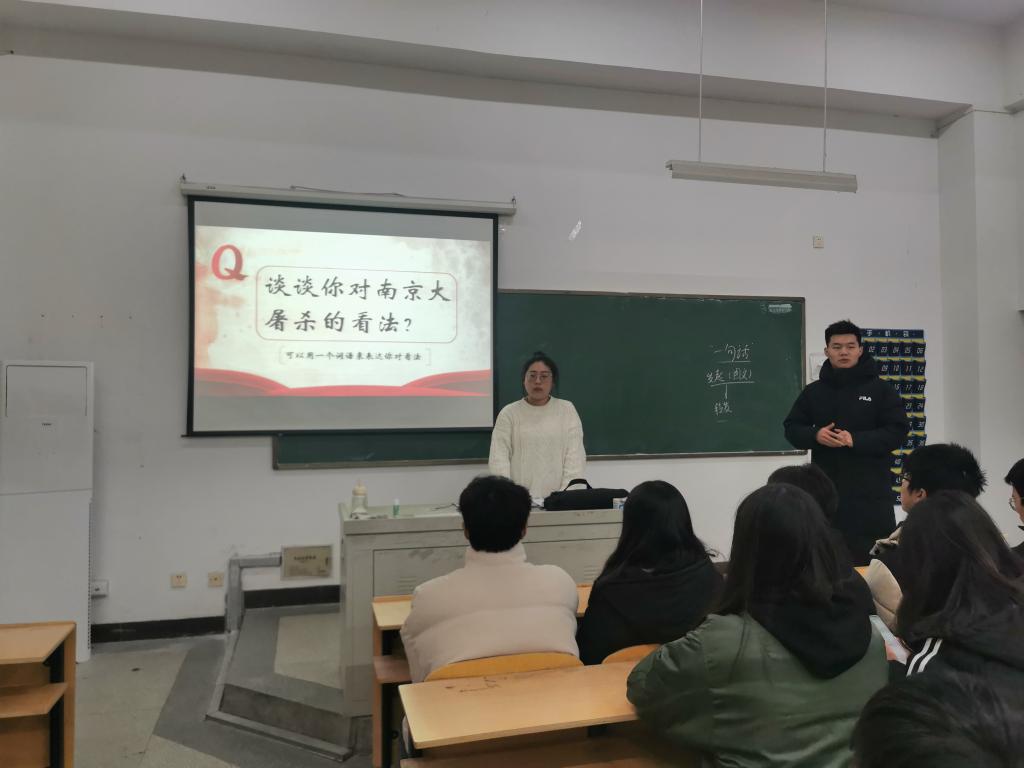 生物工程学院各班团支部分别开展了南京大屠杀死难者国家公祭日主题团日活动,其中20药学四班、19药学一班、19药学四班团支部在活动当日,全体师生默哀一分钟,悼念在南京大屠杀中遇难的同胞,现场庄严肃穆,共同祈愿。随后通过播放“国家公祭日”主题宣传片,让同学们更加全面地了解历史、回顾历史,缅怀死难同胞。