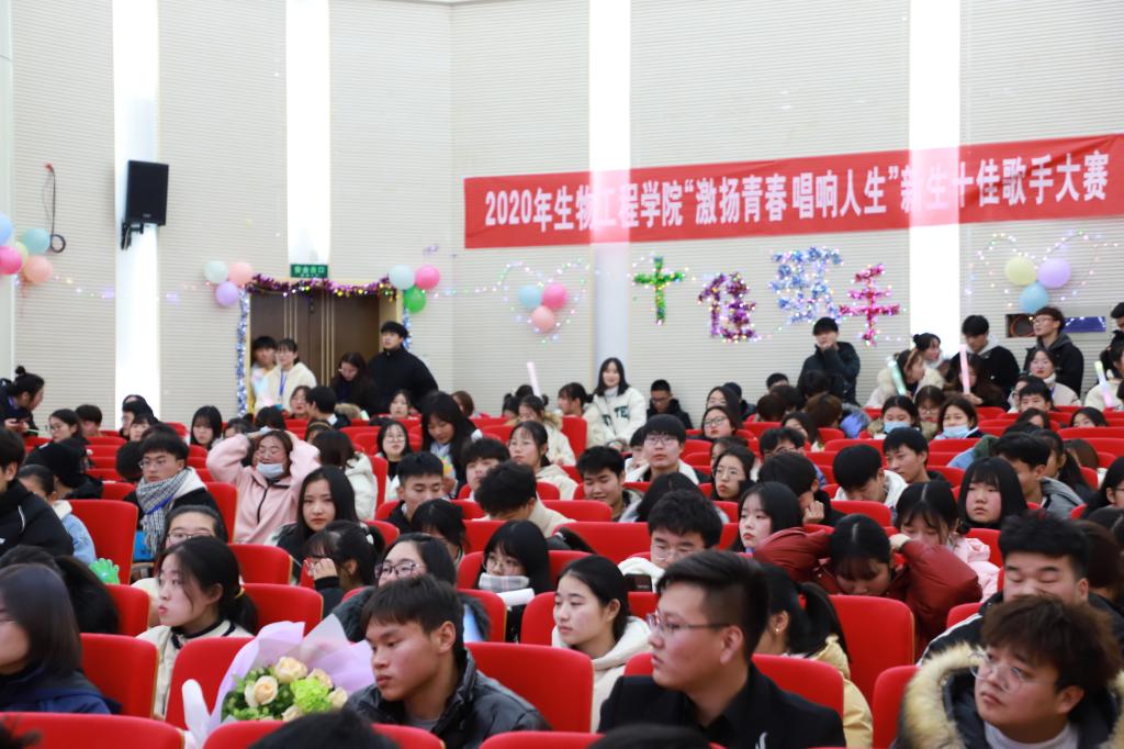 为营造良好的校园文化范围,给学生提供一展歌喉的舞台,12月17日晚,生物工程学院在图书馆二楼报告厅成功举办新生十佳歌手大赛。生物工程学院党总支书记汪春荣、院长刘修树、教管办主任方丽波、学管办主任周婷、团总支书记肖昕、专职辅导员、新生班主任以及所有新生观看本次歌手大赛。整个报告厅座无虚席,大赛精彩纷呈。