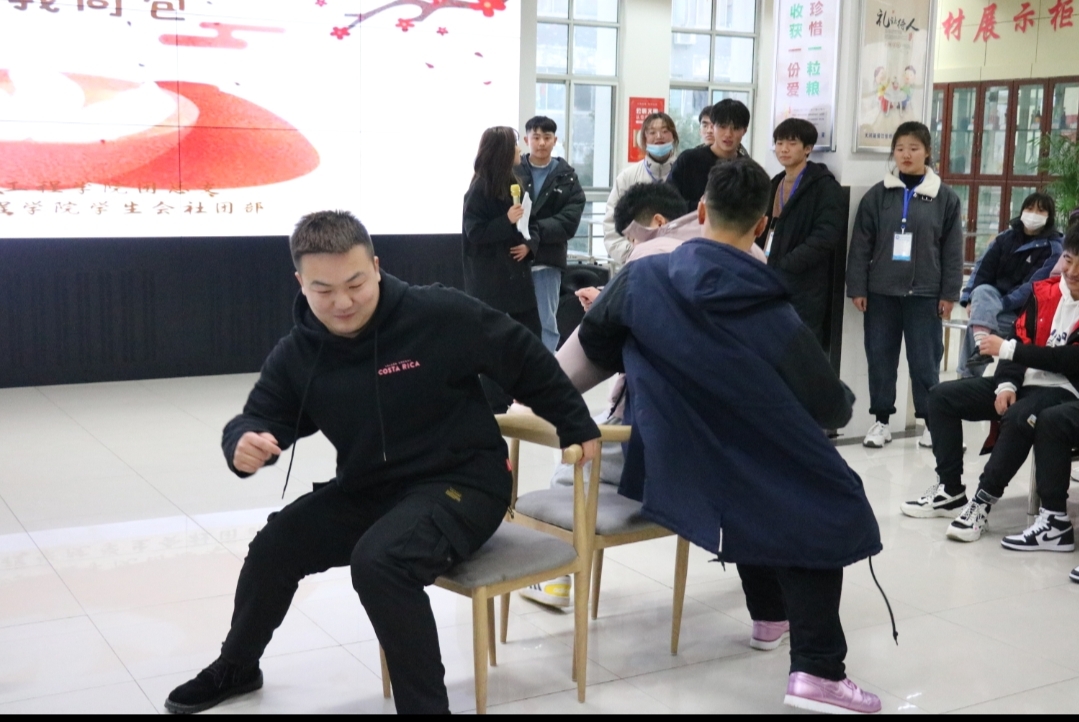 在包好饺子之后,志愿者们把包好的饺子送去蒸煮。在等待饺子蒸熟的时间段里大家开展了一些才艺表演和热场小游戏。学检部的新生谢贝贝同学带来的《稻香》让现场的所有人跟着一起哼唱,带动了现场氛围。