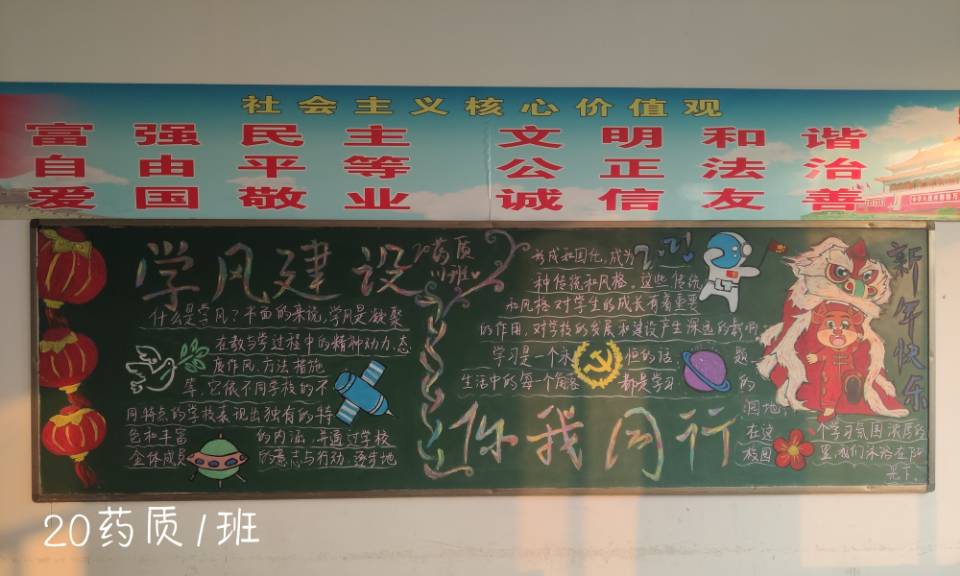 为进一步加强学风建设,帮助同学们掌握良好的学习方法,更好地学习专业知识,提高自身的竞争实力生物工程学院于2020年12月30号至2021年1月3号举行了“学风建设你我同行”主题教育板报评比活动。生物工程学院20级大一所有班级积极参与了此项活动。根据学校要求以及板报完善程度,内容是否鲜明,是否认真完成等客观评选要求,学生会学检部于1月4日检查各班板报完善程度并公平合理的评选优秀板报班级。20药质1班、20药学3班、20食质班荣获前三名。这三个班级的优秀板报具有开拓视野,增长知识、花样翻新,独出心裁、图文并茂,言简意赅等特点。