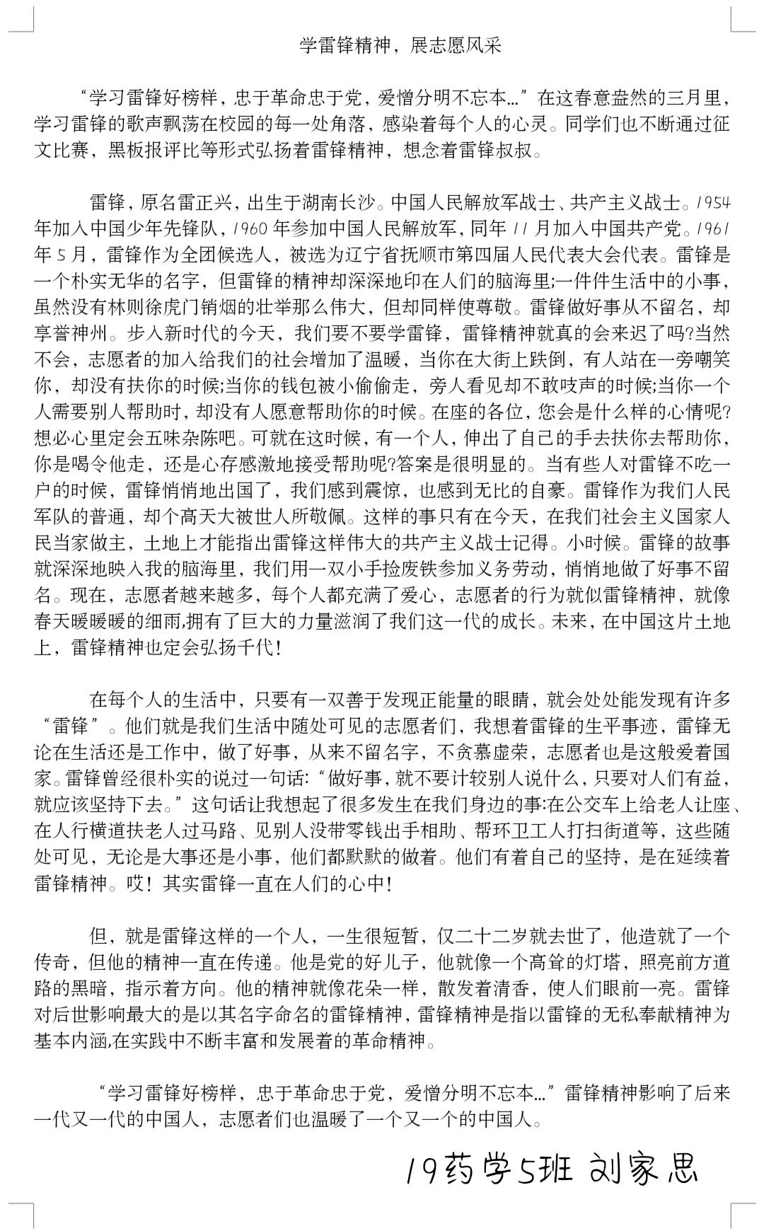 为积极宣传雷锋经典语录、传承雷锋故事、发扬雷锋精神,发现、分享身边的好人好事,传递青春正能量,感染广大青年学生,征文评比活动也在全院如火如荼地开展,涌现大量优秀作品。