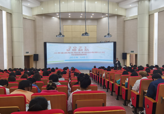 为提升学生技能,加深行业认识,4月10日,江苏金迪克生物技术有限公司专场招聘宣讲会在图书馆2楼报告厅成功举办。生物工程学院党总支书记汪春荣、副书记周婷及全体专职辅导员参加了本次宣讲会。
