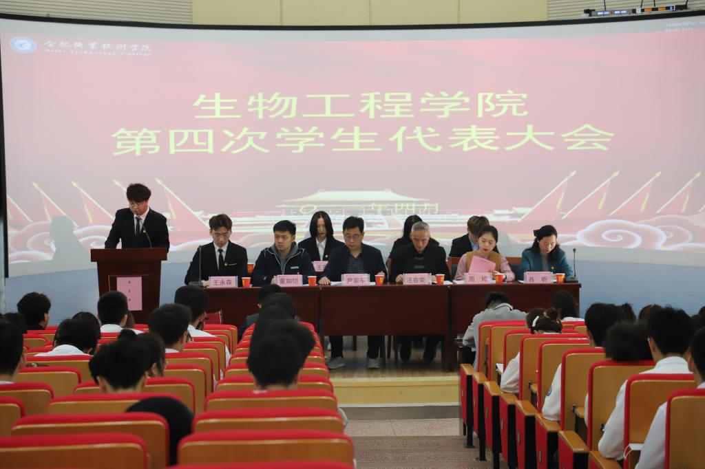 为更好统调生物工程学院学生工作,以学生会为中心发挥纽带作用,服务同学、营造和谐校园,4月17日上午,生物工程学院第四次学代会在学校图书馆二楼报告厅召开。全院139名学生代表参加了会议,学生处副处长尹宗平(主持工作)、校团委综合部部长、校学生会秘书董如恺、生物工程学院党总支书记汪春荣、副书记周婷、团总支书记肖昕、全体学管教师及校学生会主席出席会议。