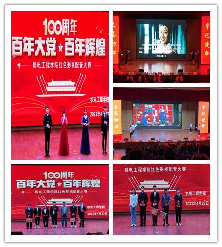 为庆祝建党100周年,弘扬党的优良革命传统,坚持党的领导,追忆革命岁月,传承红色文化,机电工程学院于4月23日晚在大学生活动中心二楼举办红色影视作品配音大赛。该院党总支副书记丁迎春,校团委副书记赵倩倩,该院学管办主任杨晨,该院团总支书记朱何萍,辅导员何舸、张开老师担任评委。