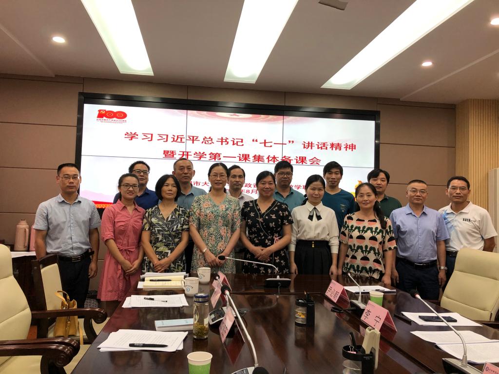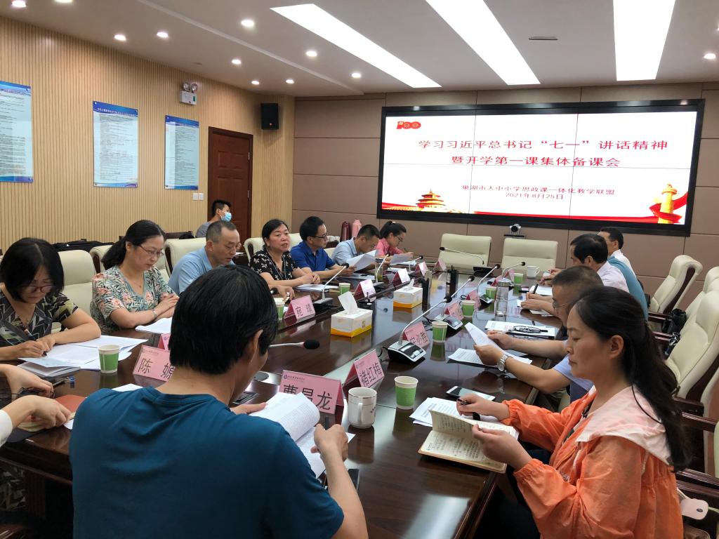 为深入学习宣传习近平总书记在庆祝中国共产党成立100周年大会上的讲话精神,充分发挥思想政治理论课在立德树人中的关键课程作用,加强大中小学思政课一体化建设,充分发挥大中小学思政课整体育人优势,实现不同学段之间的顺序性、连贯性、衔接性,循序渐进、螺旋上升地开设好大中小学思政课,8月25日上午,巢湖市大中小学思政课一体化教学联盟在合Beat365鼓山校区召开学习习近平总书记“七一”讲话精神暨开学第一课集体备课会,巢湖市教体局何石主任及联盟教学指导委员会“七一”讲话精神备课组成员参加会议,会议由合Beat365马克思主义学院院长靳玉琼主持。