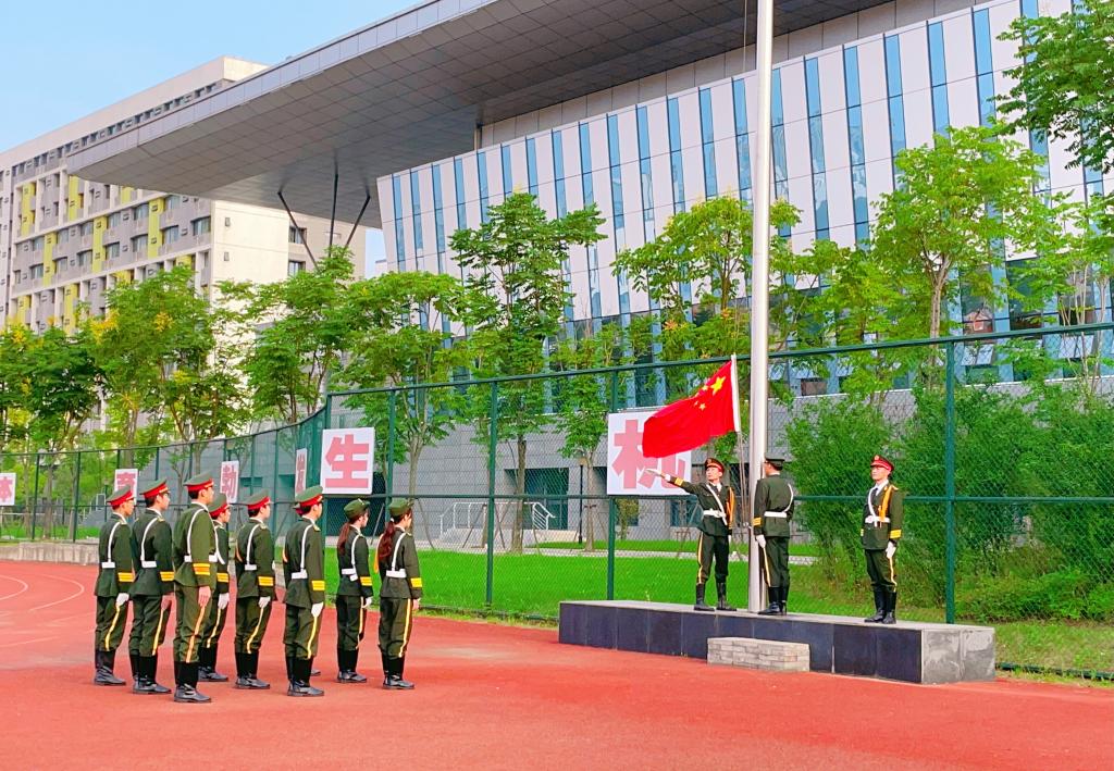 仪式上,城轨护卫队的队员们穿着崭新的礼服,迈着矫健的步伐,护着鲜艳的五星红旗入场。伴随着《义勇军进行曲》的响起,全体师生齐唱国歌、行注目礼,寄托爱国情怀,抒发报国之志。