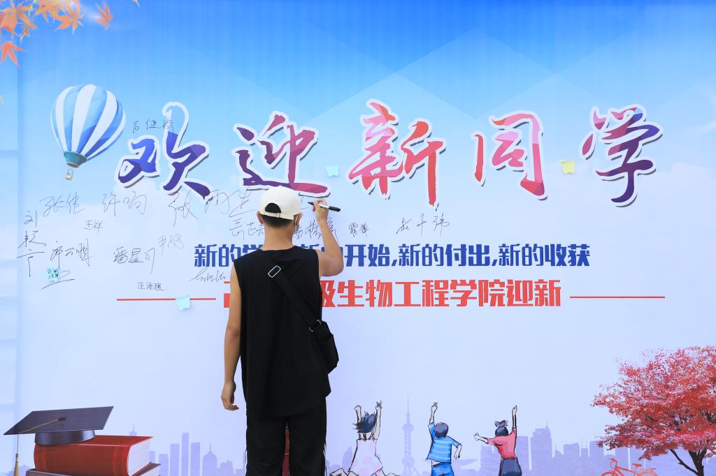 为迎接新生学子的到来,生物工程学院准备充分,细节满满:编排微信推送提前让新生了解一卡通的相关事宜,备下“防丢失”的行李箱便签贴,布置好可以拍照纪念的签名墙......周到的部署让迎新工作有条不紊地进行,也让新生们感受到家的温暖与关怀。