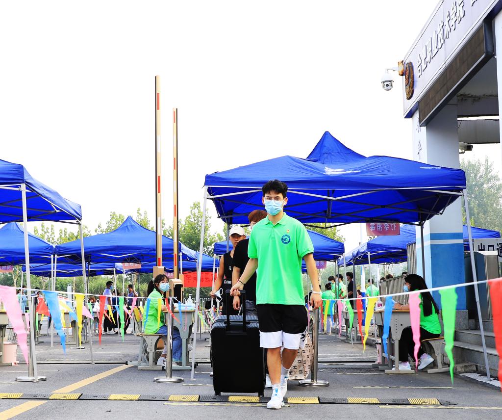 在消毒处,学院贴心地为所有新生准备了替换的口罩,随后志愿者们指引各位新同学前往班级报到点,并耐心解答他们在生活用品领取、寝室入住等方面的问题。本次志愿者团队由生物工程学院团总支组织,100位学长学姐身穿果绿色志愿服,为萌新们提供热情的服务。秋意渐凉,愿这绿色带给新生春天般的温暖,化解他们心头的胆怯与陌生。