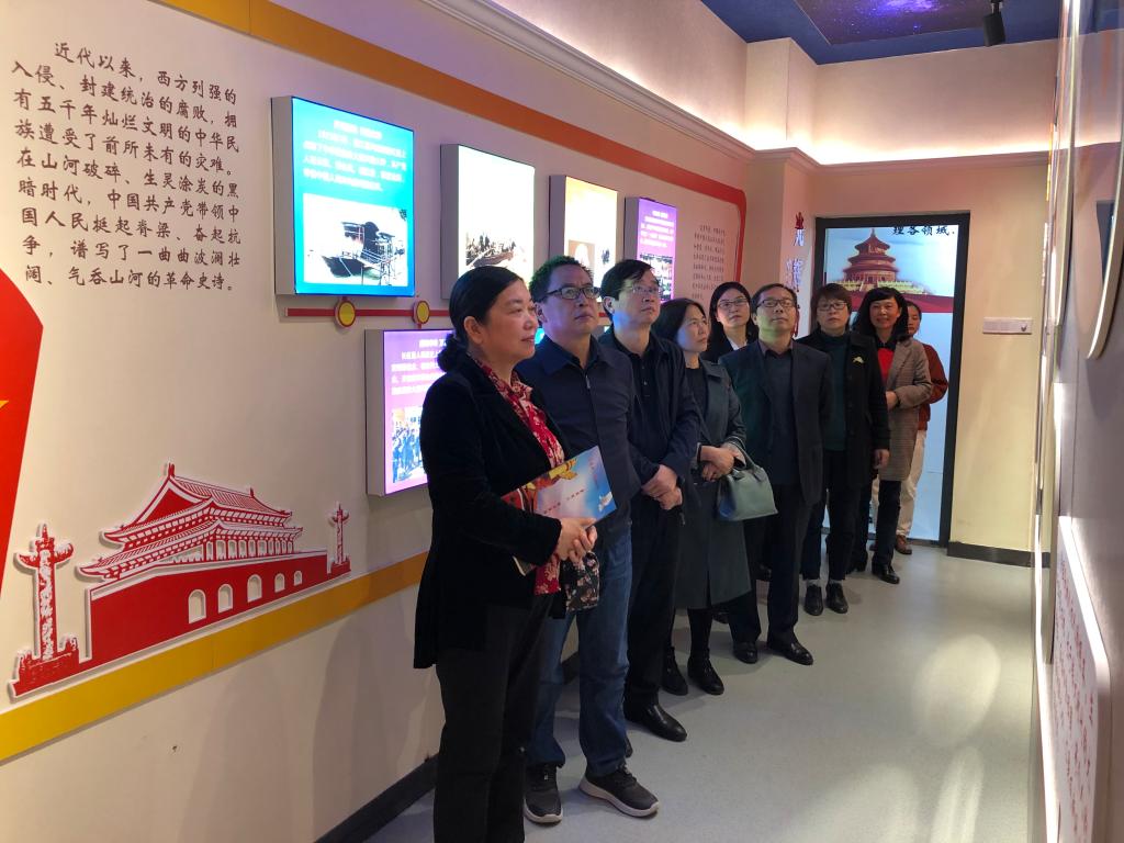 最后,我们一行还实地考察了思政3D虚拟仿真实验室——立德树人馆,同对方详细交流了3D虚拟仿真实验室的场所建设、教学资源、技术支撑、设备运用以及经费投入。思政3D虚拟仿真实验室利用新技术、新媒体,将实践教学融入到日常思政教学中,使得学生足不出校即可沉浸式领悟历史文化和革命精神,接受红色文化、红色思想的教育,让学生真正在实践活动中加深对理论知识的理解。