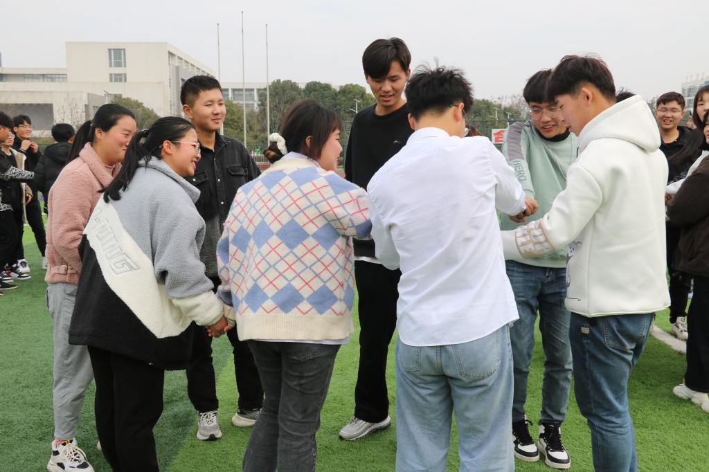 此次活动共分为以下四个环节,分别是:“滚雪球”“爱的抱抱”“传纸杯”和“情解千千结”。首先,通过“滚雪球”环节让大家加深对组内成员的了解,为后续活动的展开奠定基础。接着,“爱的抱抱”活动让大家在主动交流的过程中,感受竞争与合作的力量,另一边,同时开展的“传纸杯”活动则展现了同学们的团队协调能力与集体凝聚力。最后,“情解千千结”让每一位同学深刻体会到没有什么结是“情”解不开的,增强了彼此之间的亲切感和归属感。