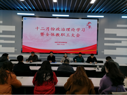为回顾总结2021年各项工作开展情况,部署安排期末相关工作,12月22日,信息工程与传媒学院在轨道楼四楼召开全体教职工大会暨12月份政治理论学习,会议由院党总支书记李红雨主持,全体教职工参加会议。