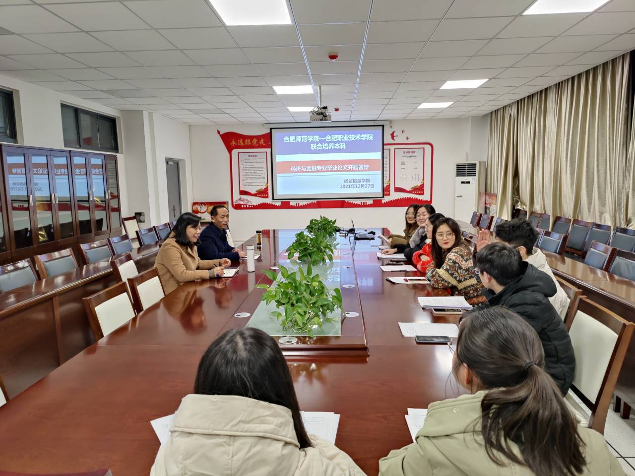为提高人才培养质量,抓好联合培养本科生毕业论文工作,Beat365唯一官方网站经贸旅游学院经济与金融专业(专升本)按照联合培养学校合肥师范学院和Beat3652022届本科毕业论文工作计划,于2021年12月21日—30日分批次举行了本科生毕业论文开题报告答辩会。