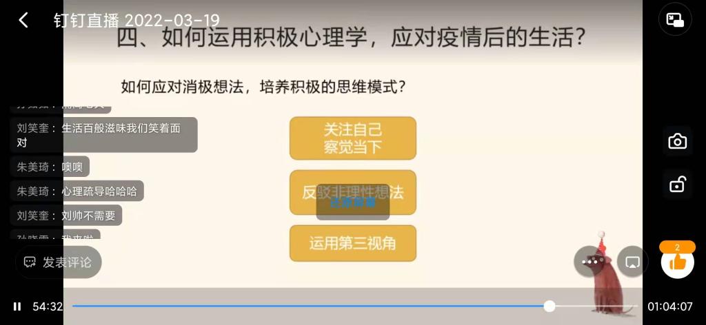 通过本次心理讲座,有助于隔离的同学在疫情期间做好心理建设,收获更多的安心,进行自我心理疏导的同时,也可以帮助身边的人渡过难关。(供稿:生物工程学院 编辑:杨璨)