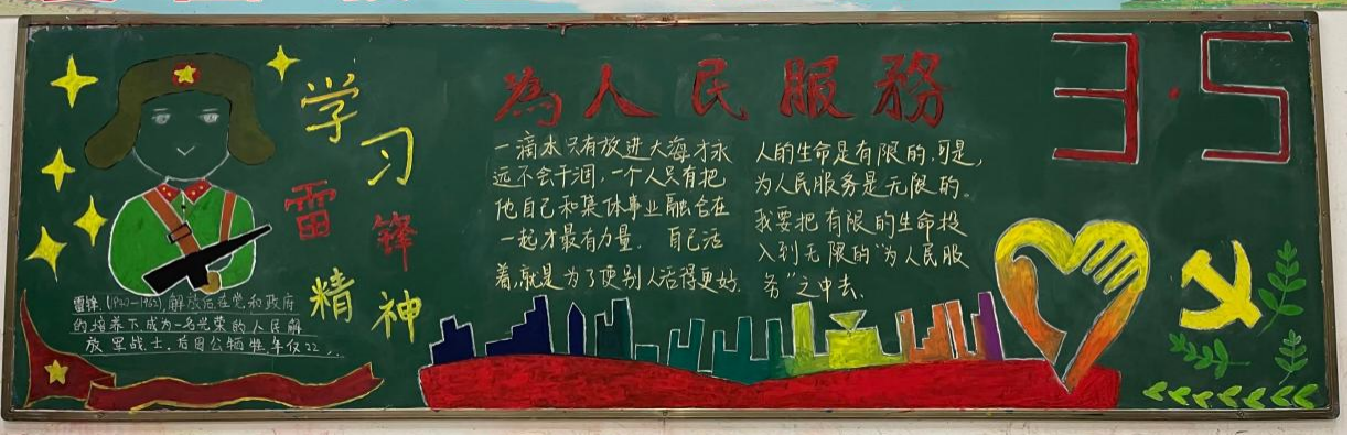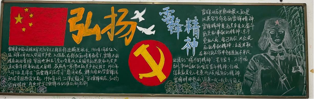 为进一步引导学生用实际行动诠释雷锋精神,点燃同学们的思想道德建设热情,生物工程学院团总支开展“雷锋月”主题黑板报活动,弘扬雷锋事迹,传承新时代雷锋精神。