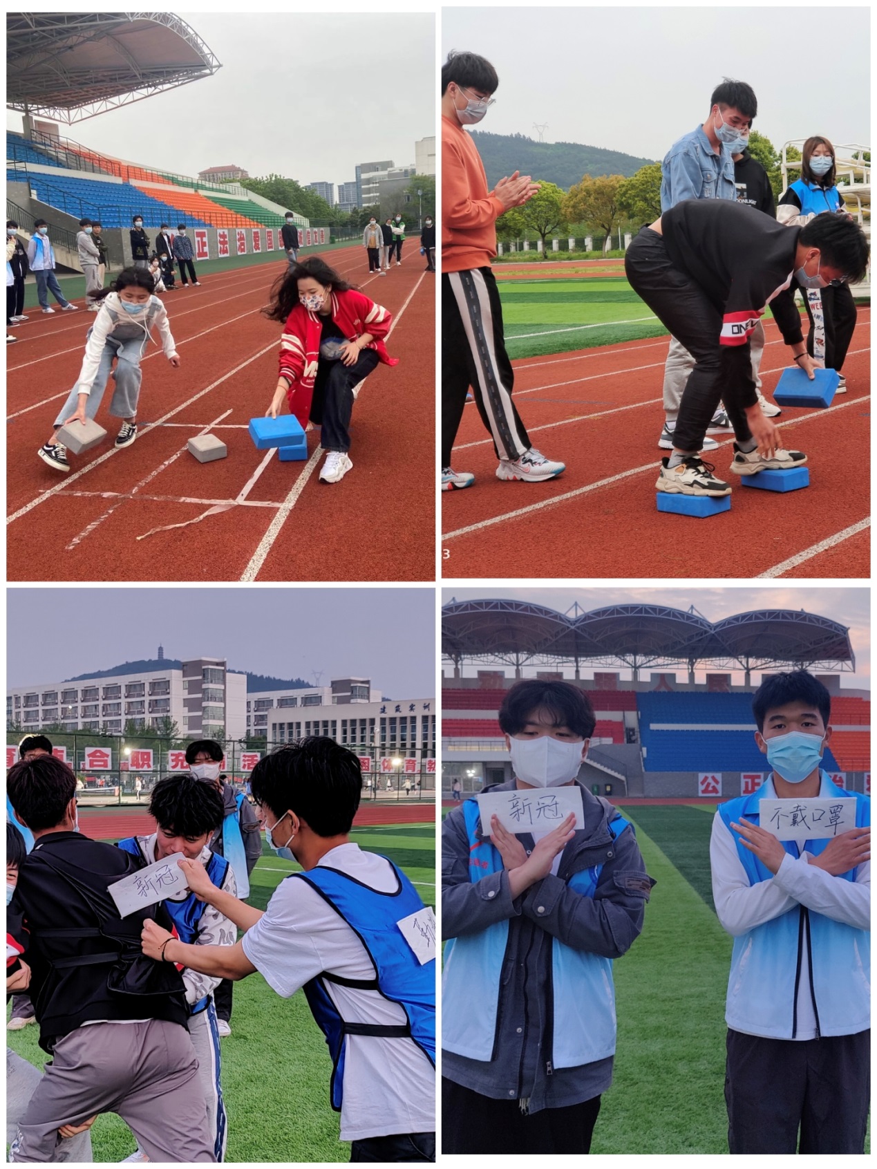 4月15日下午4点,第一期活动在鼓山校区室外运动场准时开始。团体游戏井字棋、摸石头过河、撕名牌依次开展,同学们为了小组的胜利相互协作,奋力争先,活动现场充满了欢呼声和加油声。在撕名牌环节,同学们在名牌上写下了“不戴口罩”、“串宿舍”、“点外卖”等不符合校园疫情防控举措的不文明行为,以撕下名牌的方式表达拒绝这些不文明行为的态度,遵纪守规,共同维护校园疫情防控安全。
