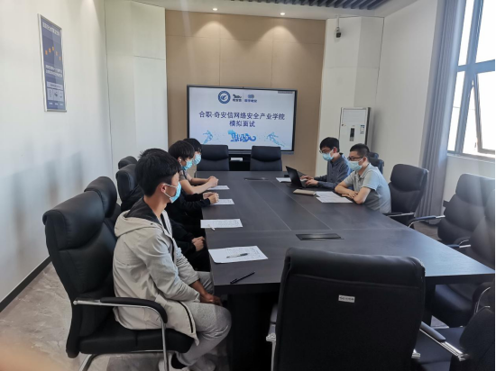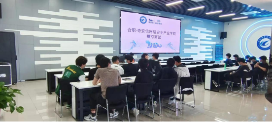 5月5日下午,合职·奇安信网络安全产业学院策划的模拟面试活动在新一代信息技术产教融合实训基地网络安全实训中心成功举办。本次活动旨在提高学生的应聘能力和社会竞争力,为同学们提供一个了解面试、熟悉面试、走进招聘面试的平台,提供一个展示自我,完善自我,挑战自我的机会,同时也为企业与学校、学生开展更广泛的交流提供一个平台。