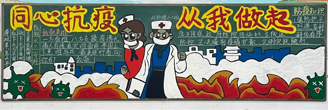 为加强医学院学生防控新冠肺炎意识,强化学生对疫情防控知识,同时建设疫情防控下的学生心理健康,巩固宣传教育成果。5月份,医学院开展了“疫情防控·心理健康”主题黑板报评比活动。本次活动由20级、21级学生共同完成。