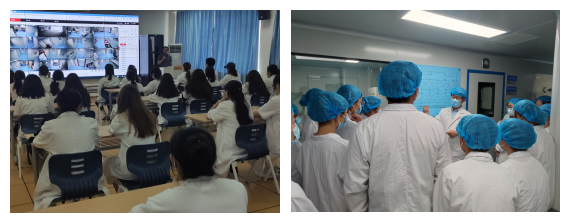 本次活动周活动医学院做了精心安排。在生物医药协同创新中心开放环节,分别由蒋斌教授、杜江副教授、陈婷婷博士、李二军老师以及何志远、许智勇两位工程师在中心多媒体室、质检室和中心净化区通过视频连线、现场介绍和操作演示等形式组织学生观看了中心工作人员的实验操作,听取了老师对中心功能及应用的介绍,以及质检室、原核发酵系统、真核发酵系统和冻干系统等各种仪器设备应用的介绍。同学们对中心具备研发、生产类似智飞生物产的新冠基因工程疫苗的能力表达了浓厚的兴趣。