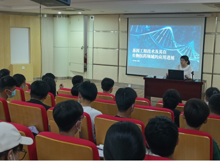 在专题讲座环节,苏琰副教授在鼓山校区图书馆第二报告厅作了题为《基因工程技术及其在生物医药领域的应用进展》的学术讲座。苏琰副教授系统介绍了基因工程技术的基本原理及其在药物生产中的技术流程,以及基因工程技术目前在生物医药领域的应用现状,并分析了其面临的主要问题及其发展前景和广阔用途。