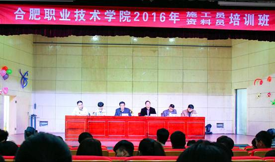 4月8日下午,我院在院大学生活动中心举行2016年施工员、资料员培训班开班典礼。副院长孙兴林和经贸系、电大负责人及来自经贸系2014级工程造价、建筑工程技术、建筑装饰工程技术三个专业的辅导员和390名在校学生出席了开班典礼,会议由经贸系主任宋风长主持,本次培训班由电大与经贸系共同承办。
