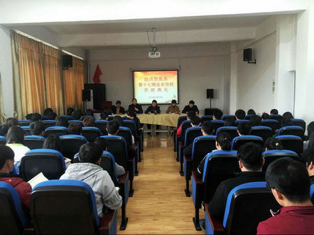 3月24日下午,经贸系第十七期业余党校开班典礼在经贸楼五楼会议室举行。学院党委副书记胡其云应邀出席,经贸系党总支、学生支部全体成员及本期培训班57名学员参加了开班典礼。开班典礼由经贸系党总支副书记吴俊峰主持。