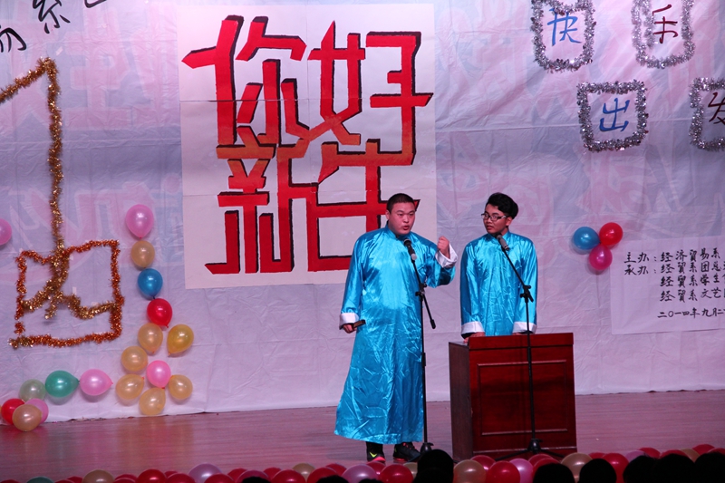 9月29日晚七点,经贸系迎新生文艺晚会在院大学生活动中心隆重举行。学院相关部门负责人及经贸系师生代表欢聚一堂,共同观看了文艺演出。