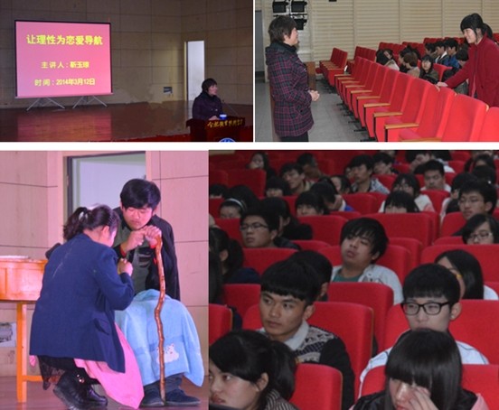 3月12日下午,团委和思政部在大学生活动中心二楼报告厅联合举办了"让理性为恋爱导航"的专题讲座。讲座由思政部主任靳玉琼老师主讲,200余名学生现场聆听了讲座。