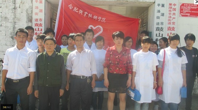 由医学相关类专业的志愿者们组成的义诊队为村里的老人们测量血压、血糖,检测血型,并为他们制作了健康档案,同时向他们宣传老年人保健知识。