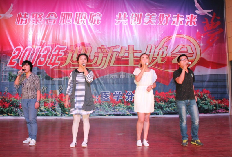 四是举办迎新晚会,丰富校园文化生活。9月27日晚,医学分院在院大学生活动中心举办以“相聚合肥职院,共创美好未来”为主题的2013年迎新生文艺晚会,学院领导与分院师生代表欢聚一堂。同学们用他们的精彩演出,充分展示了分院学子健康向上的精神面貌,表达了广大师生对2013级新生的热烈欢迎和美好祝福。