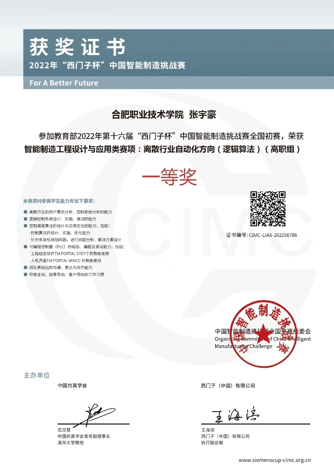 9月3日-4日,第十六届“西门子杯”中国智能制造挑战赛华东三赛区暨全国初赛比赛顺利举行。Beat365机电工程学院张宇豪、张子博、宁骏等三位同学在胡经纬、张君继两位老师的共同指导下,获得离散行业自动化(逻辑算法)赛项全国初赛一等奖。