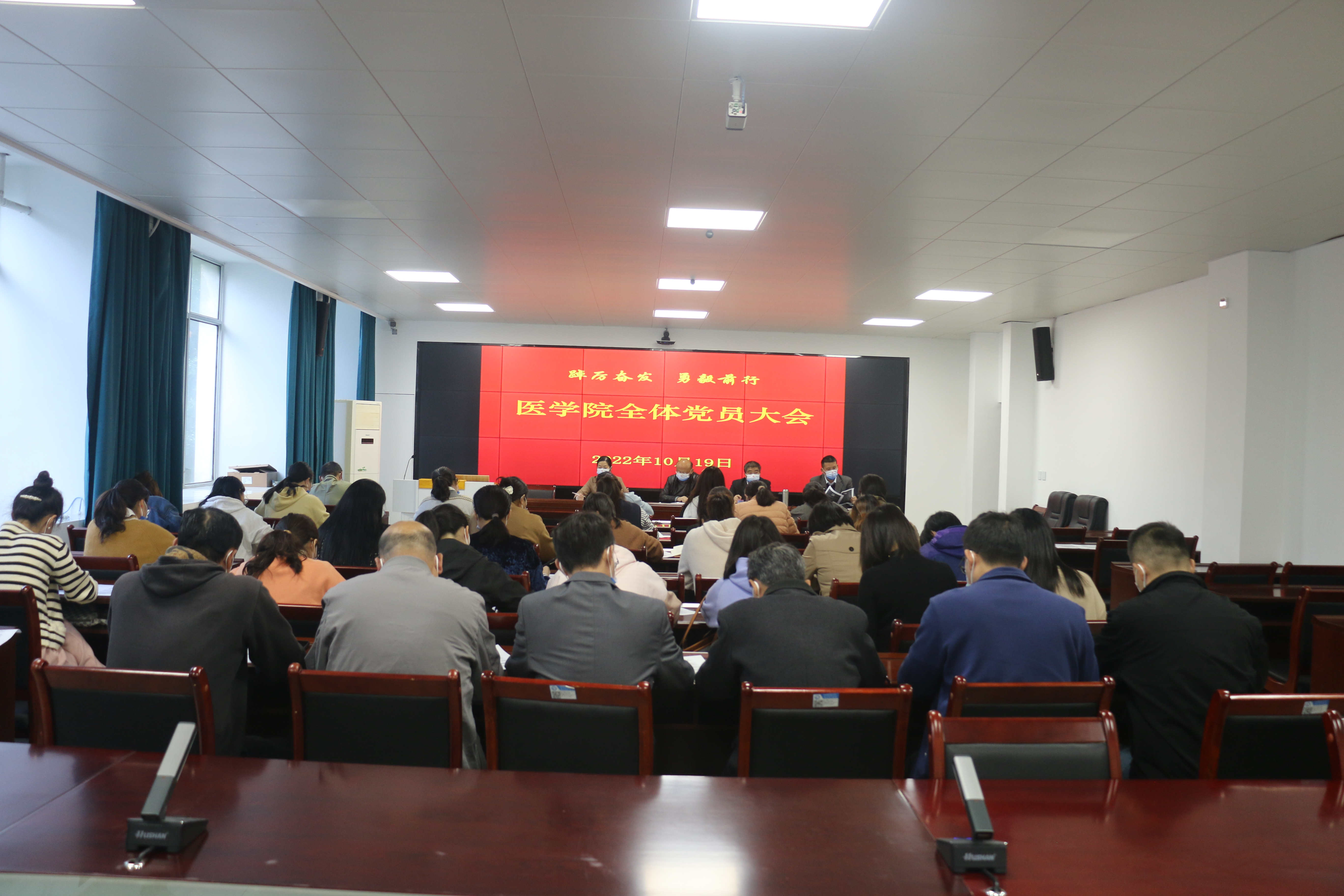 10月19日下午,医学院在医学楼二楼智慧会议室召开全体党员理论学习大会,传达学习党的二十大精神。校党委委员、副校长周晓隆出席会议,医学院全体党员参加会议。会议由医学院党总支副书记(主持工作)孙美兰主持。