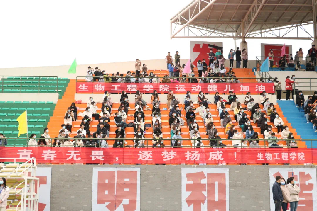 生物工程学院表演方阵的表演气势恢宏、精彩纷呈。学院的运动健儿们勇敢拼搏,为学院取得优异成绩。其中,安嘉馨同学获得了女子跳高第二名,冷雪晴同学获得了女子3000米第二名,顾清同学获得了女子200米第二名。运动员们的出色表现,离不开他们背后的志愿者们。生物工程学院的志愿者们在比赛期间为保障运动员们的正常发挥,在保障优质的后勤服务外,一直为运动员们加油打气,从而提供了良好的赛事环境。观众席上的生物工程学院的学生摇旗呐喊,振奋人心,一声声欢呼传达了他们的喜悦,鼓舞了运动员的士气。生物工程学院的参赛老师们也都是运动健将,他们奋力拼搏,在8×100接力赛中取得了第二名的好成绩。
