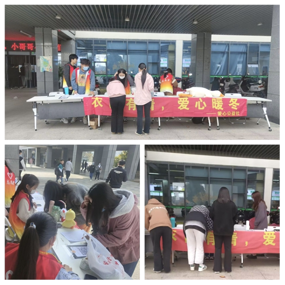 11月27日,历时三天的“衣旧有情,爱心暖冬”活动圆满结束。本次活动由信息工程与传媒学院爱心公益社主办。活动旨在号召同学以爱心回馈社会,弘扬当代公民高尚精神风貌,关爱困难地区的中小学生们,社会上需要帮助的人,用实际行动温暖孩子们,困难者的心灵,为他们的生活增添色彩,增强同学们的社会光荣感、责任感和使命感,实践同学们的爱心精神;同时有利于树立学生关爱他人,乐于奉献的人生价值观。