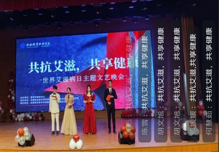 今年12月1日是第35个“世界艾滋病日”,为响应国家卫健委组织的号召,宣传抗艾防艾知识,宣扬健康生活理念,12月3日晚,由巢湖市疾控中心主办,医学院、校医院协办,天使护理协会承办的“共抗艾滋,共享健康”防艾知识宣传主题文艺晚会成功举办。按照疫情防控工作要求,本次晚会采用现场演出、线上直播的形式进行。医学院党总支副书记(主持工作)孙美兰、副院长梁春艳、团总支书记刘惠及天使护理协会社团指导老师周璇到现场观看;五百多名学生通过钉钉线上观看并参与互动。