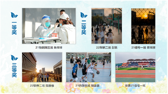此次活动受到了大家的一致好评,经过近一个月的宣传征集作品阶段,同学们踊跃的递交自己喜爱的照片。经评比,共19位同学的优秀作品从众多作品中脱颖而出,最终获奖情况如下:21物联网三班的朱祥祥同学获一等奖;21信号一班的蒋祥辉同学和22车辆二班的彭凯同学获二等奖;21药学四班的胡惠惠同学、21信号一班的张景同学和22软件二班的范倩倩同学获三等奖;21工造3班唐明请同学、21药学二班陈颖同学、21广告二班陈萍萍同学等,共13位同学获优秀奖。